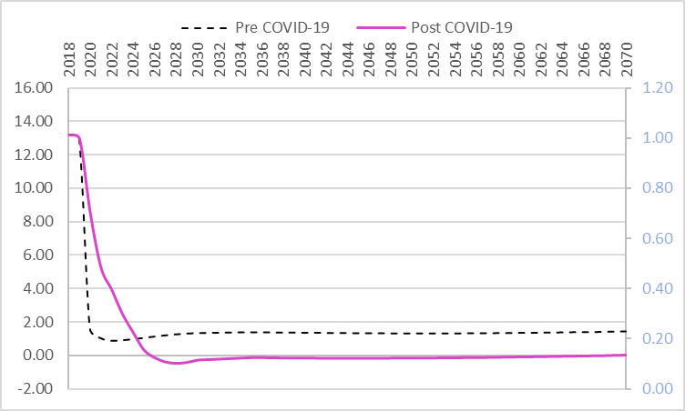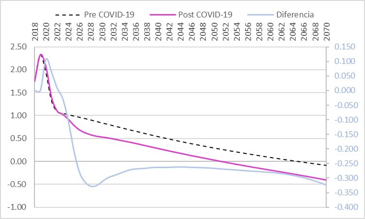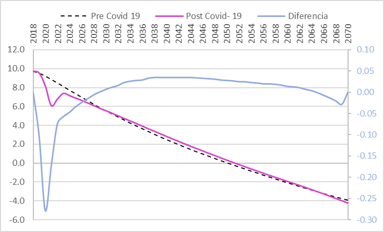 estimaciones Post COVID (línea magenta) y el de las estimaciones CD1985 son