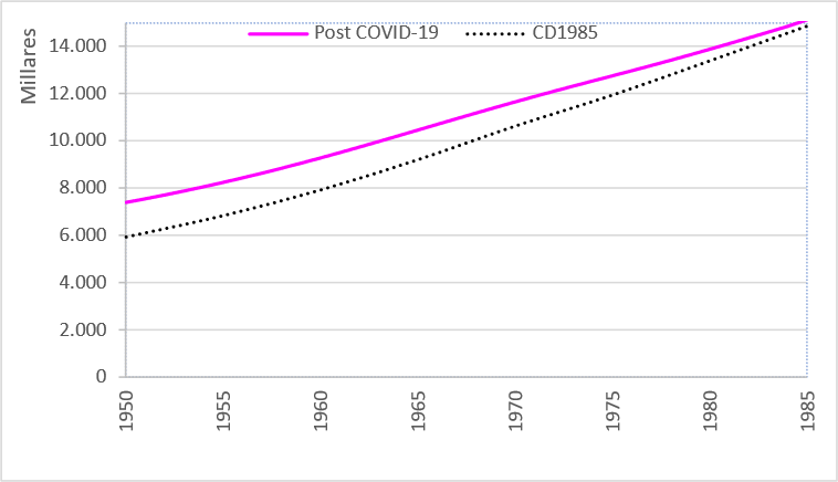 1950-1985. La información de las estimaciones vigentes denominadas Post-COVID-19