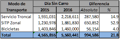 día sin carro y sin motos. Este incremento en términos porcentuales fue del