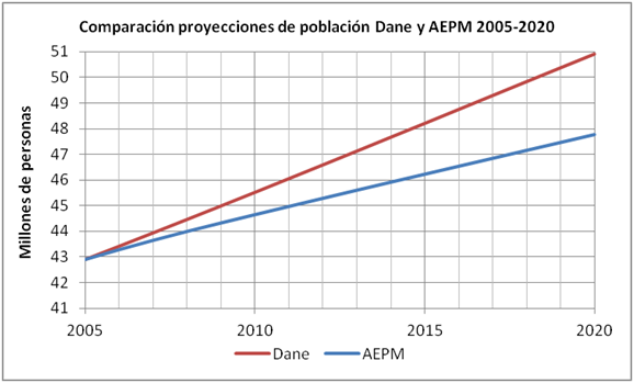 es debido a que los supuestos de proyección utilizados por el Dane resultan en trayectorias